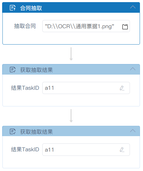 输入一个之前通过【合同抽取】活动获取到的结果TaskID