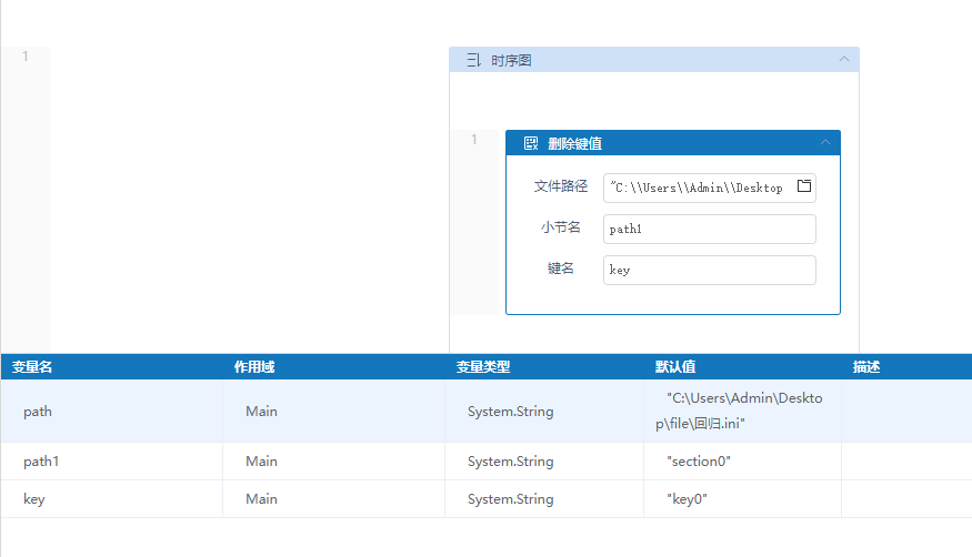 运行该工程,会找到指定的".ini"文件的绝对路径,根据小节名和键,删除当前".ini"文件的那个键值对