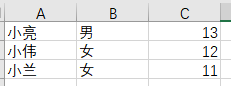 由上图可知,当前"测试excel"文件中是按照【姓名,性别,年龄】顺序进行排列的,如果希望按照【姓名,年龄,性别】的顺序排列,就需要使用到属性中的"列写入顺序"