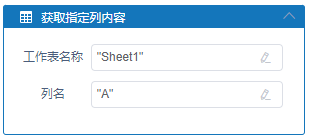 该活动根据填入的文件名称、工作表名称和列名,获取Excel文件指定列的内容