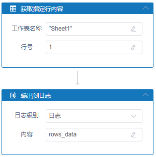 该活动根据填入的文件名称、工作表名称和行号,获取Excel文件指定行的内容