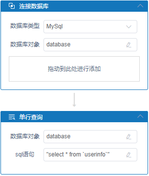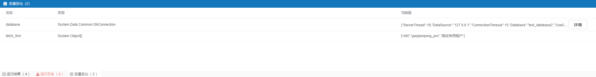 执行逻辑:连接目标数据库后,传入数据库对象,并正确输入sql语句,程序将查询到的所有数据中的第一行数据结果传递给*查询到的第一条结果定义的变量中*