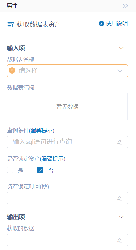 选择是否锁定资产,锁定资产后,则不可对正在使用的数据表数据进行修改。