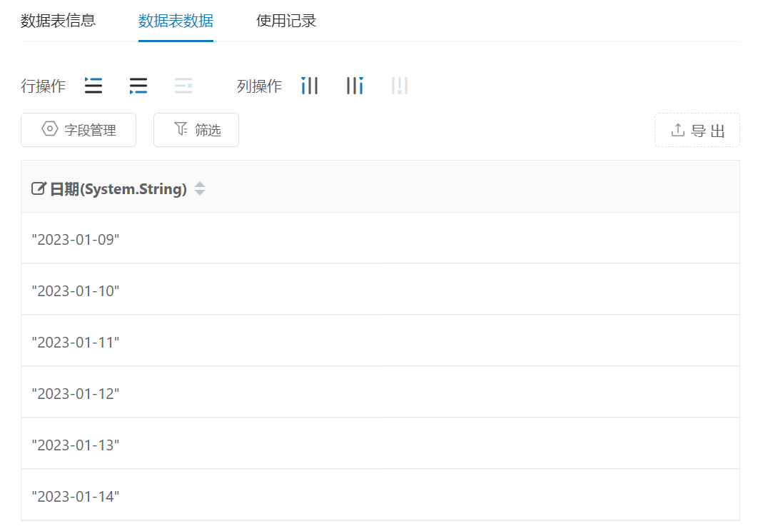 展示数据表的表结构,在写查询条件时可参照表结构写入sql。