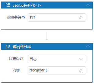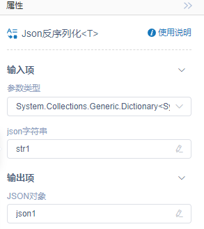 执行逻辑:RPA将Json字符串转换为指定的T类型对象,并将结果输出到Json对象