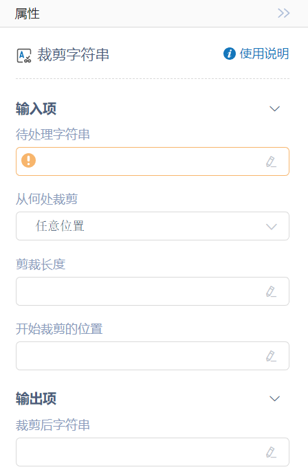 当"从何处裁剪选择"任意位置"时展示,指开始裁剪字符串的位置