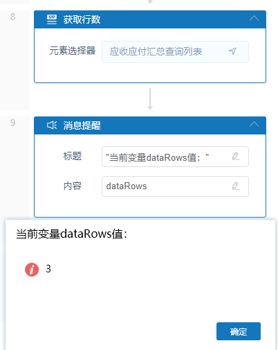 RPA在待操作元素或者元素选择器选择的元素,通过配置属性规则模拟用户获取数据总行数操作,并输出获取到的行数至整数变量