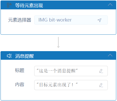 2)元素出现后执行消息提醒活动
