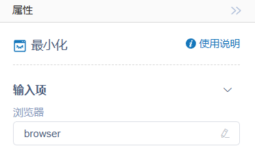 "最小化"活动中的浏览器变量,一般通过"打开网页"或"附加浏览器"活动声明,在此以"附加浏览器"+"最小化"活动组合示例: