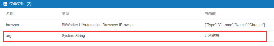 8)将活动执行后的返回值"九科信息"输出至执行结果变量"arg"中