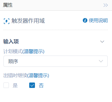 顺序:检测到多次触发动作时,会先完整执行一次的【操作】区域内流程,然后再按触发器被触发的次数继续执行【操作】区域内流程