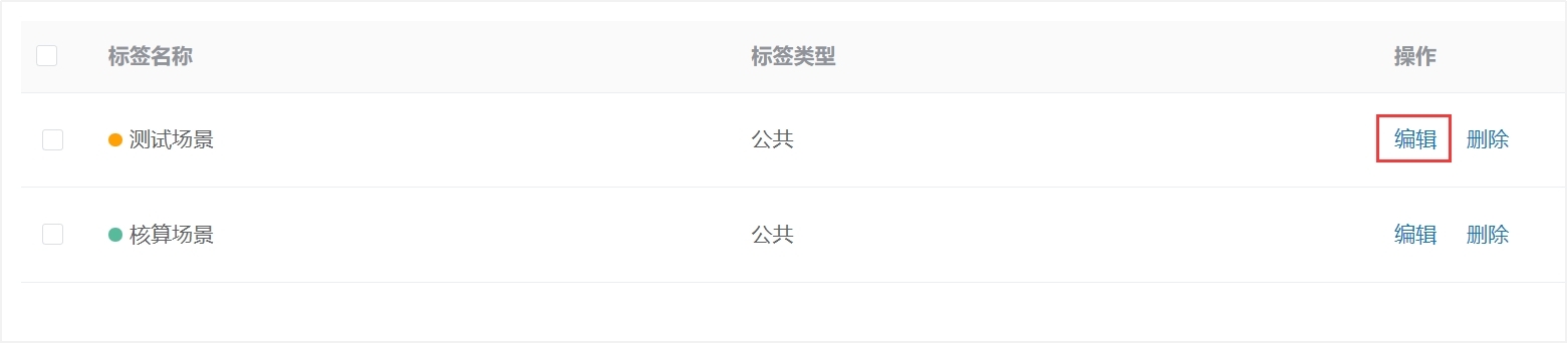 点击标签操作栏下的 「编辑」 字样,即可对已创建的标签,进行编辑操作,支持编辑标签的名称、颜色、类型。