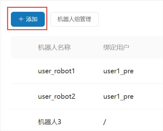 在机器人列表左上角,点击 「+添加」 按钮,即可打开添加机器人窗口;
