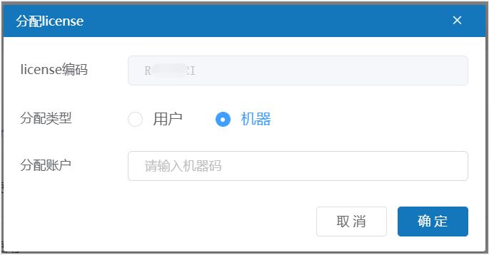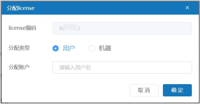点击license右侧操作栏中的分配/重新分配字样,即可打开分配窗口来分配/重新分配license;