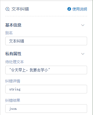 为给定文本纠错,并返回纠错结果、纠错详情。使用该活动需要联网并确认额度充足