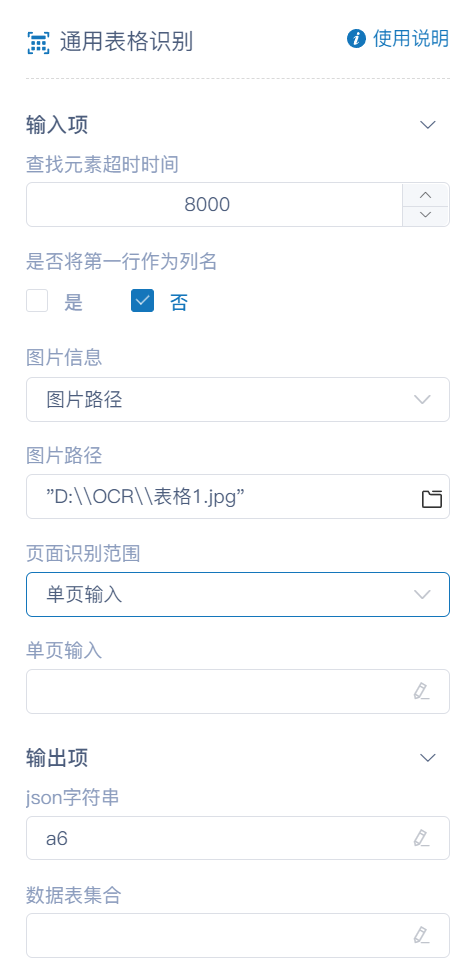 执行逻辑:通过识别表格中的内容,并将其转换成字符串形式,供后续活动使用