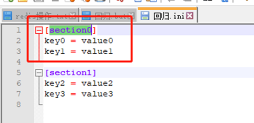 ".ini"文件中的属性,类似于树形结构的"一级菜单"