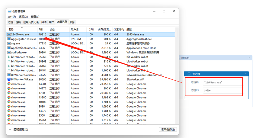输入进程名称和进程ID,运行该工程,即可停止该进程