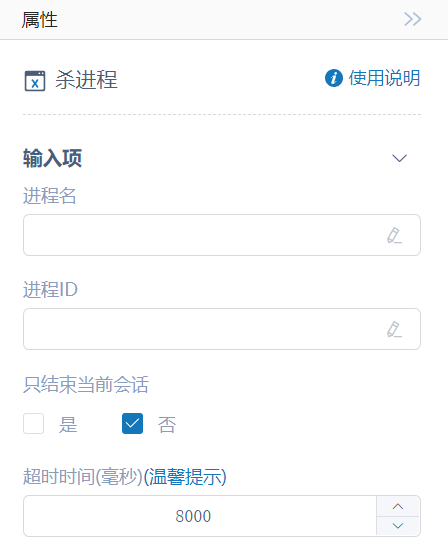 进程的名称,指定要杀掉的进程的名称,建议使用该属性,更直观的知道要杀掉的进程