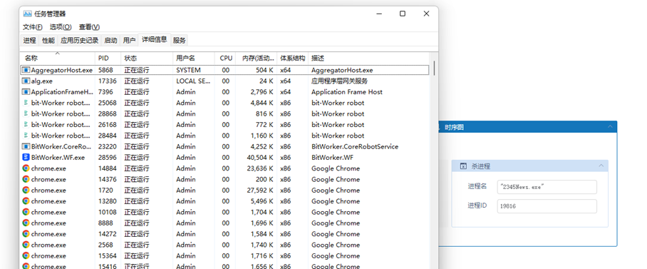 杀掉指定的进程,可以使用进程名或者进程ID指定要杀掉的进程,一般在杀某个系统的进程前,建议先退出登录,防止出现异常。同时填写进程名称和进程ID时,该活动优先使用进程ID