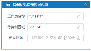 该活动首先根据填入的文件名称、工作表名称和待复制区域获取需要复制的内容,然后再将复制的内容粘贴到另外一个Excel工作表中或当前Excel工作表的其他区域中
