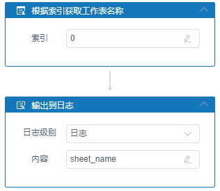 同时也可以通过配合活动"输出到日志"将看sheet_name的参数打印出来,如图: