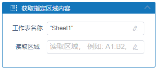 该活动根据填入的文件名称、工作表名称和读取区域,将指定区域的内容读取出来并传递至变量,变量类型支持数据表和二维列表两种方式