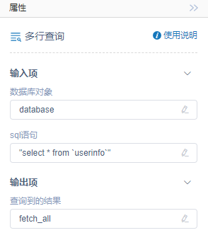 输入需要执行的sql语句,这里的sql应当为select查询语句。该属性为必填项