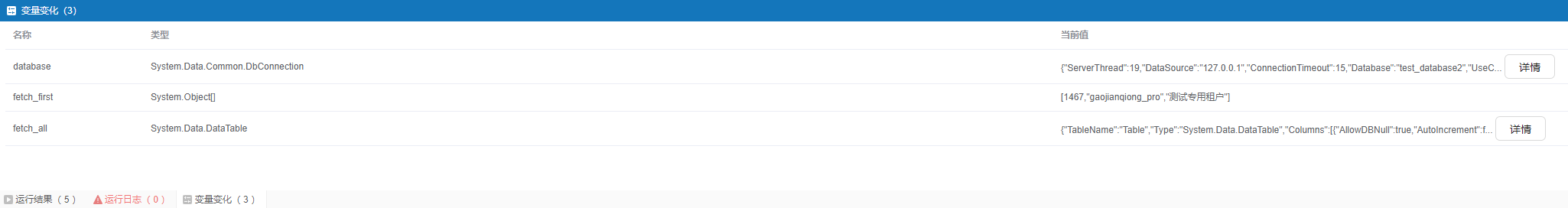 执行逻辑:连接目标数据库后,传入数据库对象,并正确输入sql语句,程序将查询到的所有数据结果传递给*查询到的结果定义的变量中*