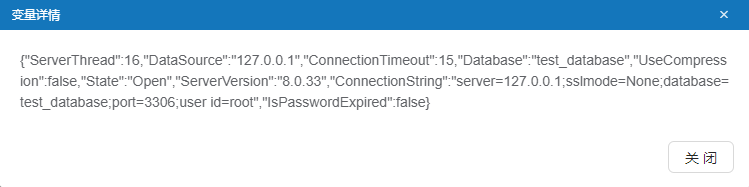 执行逻辑:选择想要连接数据库的数据库类型,在连接字符串中正确输入数据库的连接信息(可通过点击生成字符串按钮,以键值的形式输入信息,更加直观),可设置数据库对象并保存于变量中,方便在之后的流程中对已连接的数据库进行调用