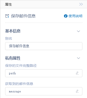 用【获取邮件】组件获取到邮件变量信息,将变量输入到【保存邮件信息】组件中,并设置储存位置,即可保存到指定位置,保存的文为格式TXT,若文件相同则为覆盖
