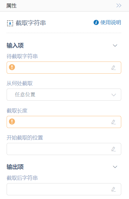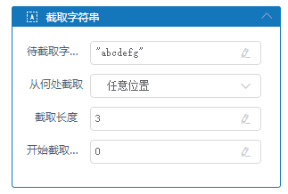 选择从何处开始截取,支持选择左侧、右侧或任意位置,如果是左侧,则从第一个字符向右取出截取长度的字符串,如果是右侧,则从最后一个字符向左取出截取长度的字符串,如果是从任意位置,则需要从开始截取的位置向右取出截取长度的字符串。