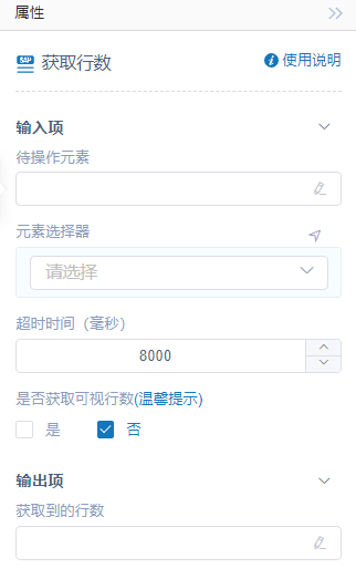 RPA在待操作元素或者元素选择器选择的元素,通过配置属性规则模拟用户获取数据总行数操作,并输出获取到的行数至整数变量