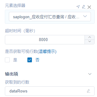 定位SAP表格应收应付数据表元素,获取可视行数选择否,运行活动组件,提取数据值