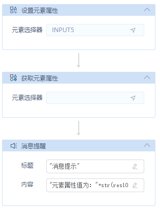 执行逻辑:选择【设置元素属性】活动,将元素的属性赋值,再使用【获取元素属性】活动,输出元素的属性到变量。