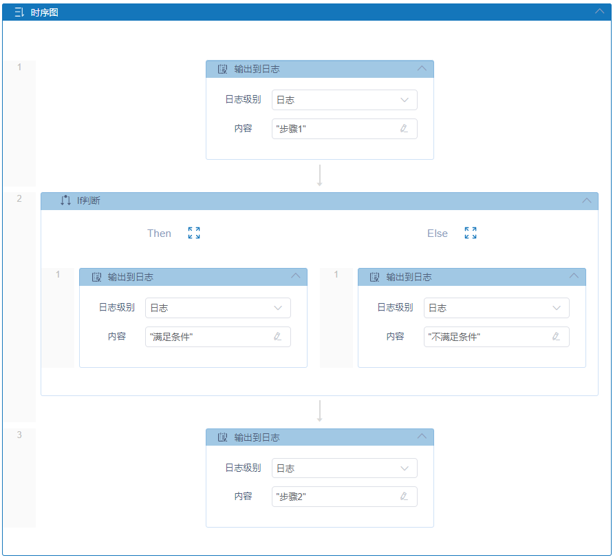 执行逻辑:执行活动时,输入用来进行判断的条件表达式,先判断指定条件的真假。若判断结果为真,则执行【Then】中的流程;若判断结果为假,则执行【Else】中的流程