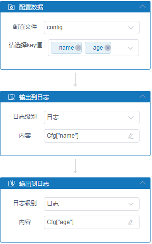 执行逻辑:选择对应的配置文件,并选择需要获取的key值,将配置中的配置数据输出至变量中,以方便后续流程使用这些数据
