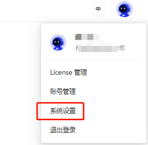 拥有租户管理员角色的账户,在个人菜单处可以点击进入“系统设置”功能,更换产品使用的logo外观、标签等内容: