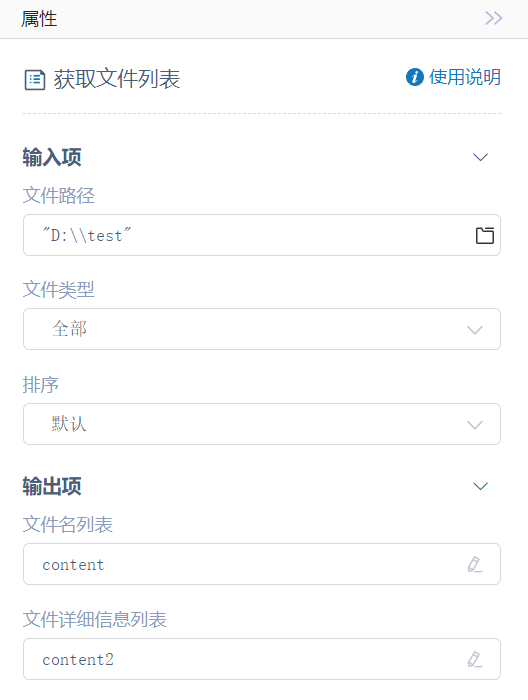 执行逻辑:用于获取指定文件夹的所有文件列表,只支持第一层子文件或者文件夹。