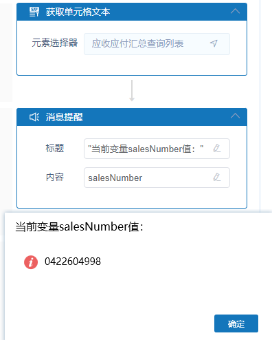 执行活动后,将指定目标单元格的文本值赋值输出到变量,此变量可以通过快捷键Control+K创建,也可以通过在变量列表创建好,直接引用