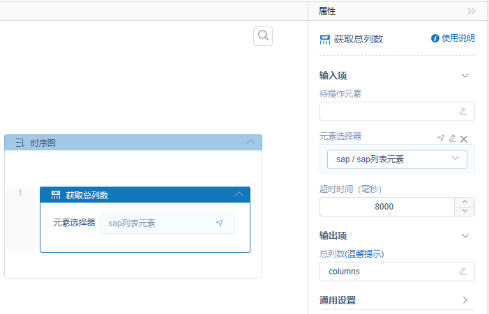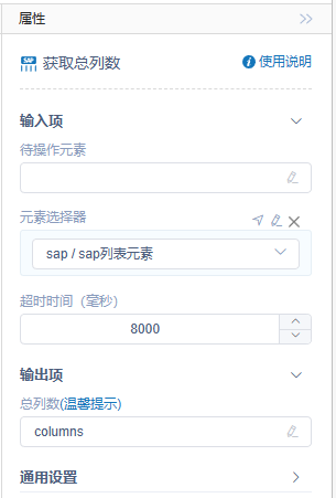 执行逻辑:RPA根据用户配置的SAP软件表格元素,解析出来该表格的总列数,并输出到配置的总列数属性变量里面