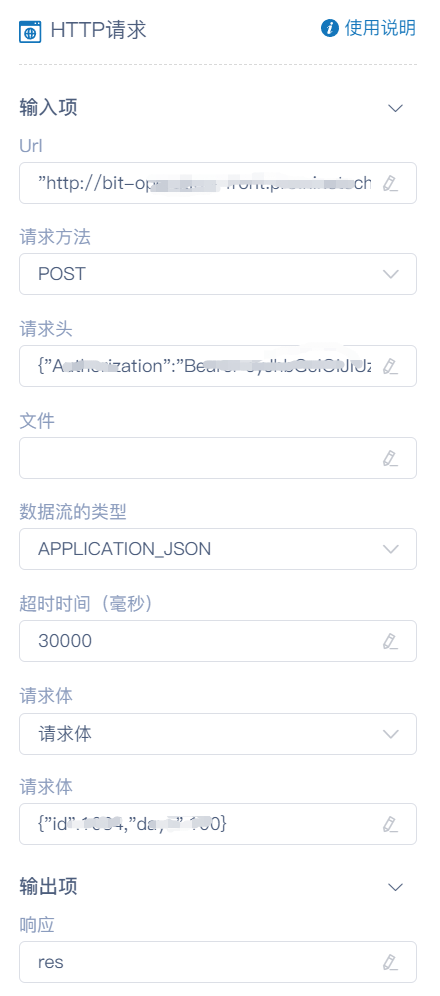 当"请求体"选择「Json请求体」时显现,为HTTP请求的Json请求体,填写body中的json串