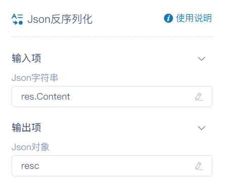 本活动一般与【Json反序列化】活动联合使用,得到结构化内容后再取出对应字段内容