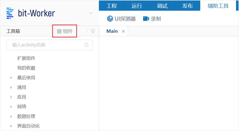 进入工程设计界面,点击界面左上角的 「组件」 按钮,即可打开组件市场窗口;