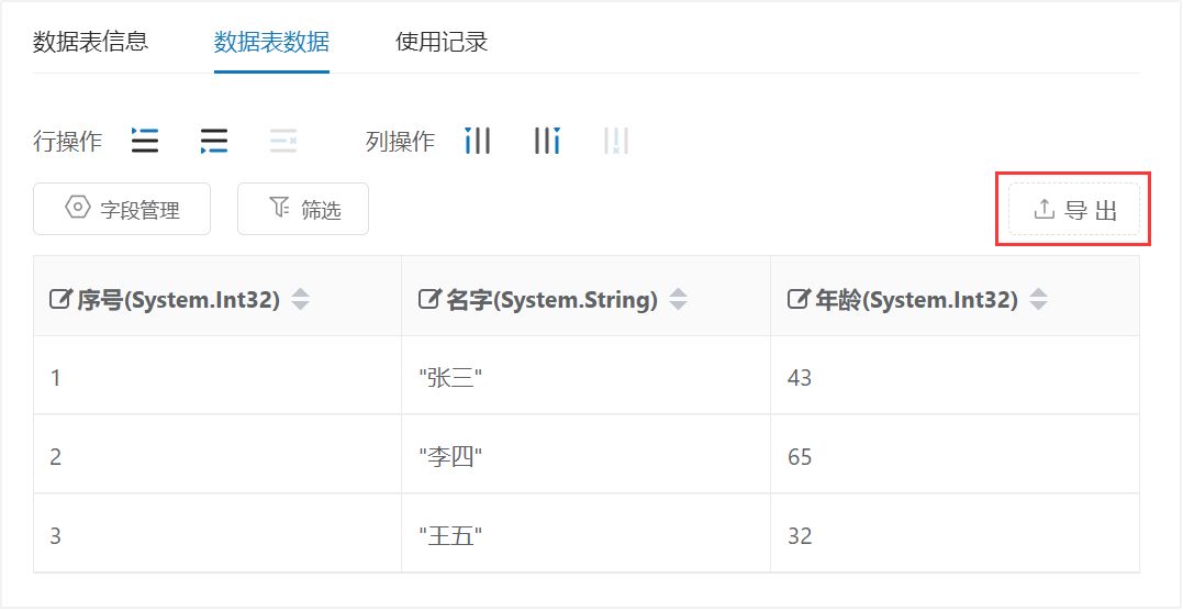 ②点击数据表右上角的 「导出」 按钮,即可导出数据表至本地。